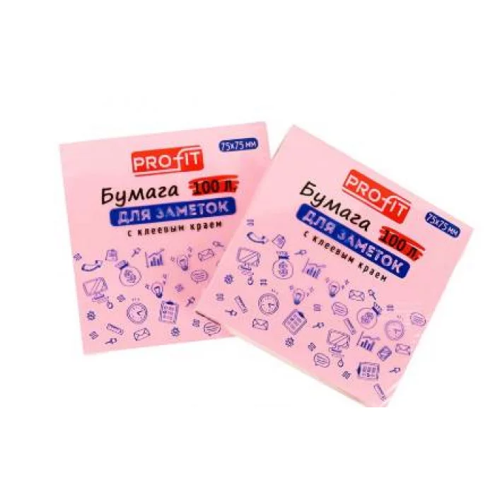 Бумага для заметок с клеевым краем РОЗОВАЯ ЗБ-5575 75х75 мм, 100л, ТМ Profit