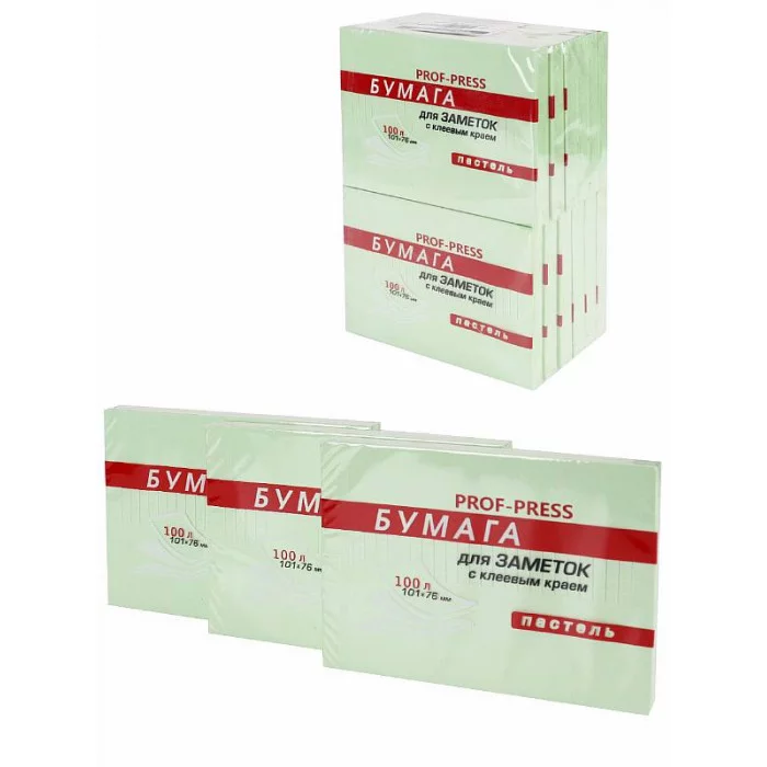 Бумага для заметок с клеевым краем ЗЕЛЕНАЯ ЗБ-4586 пастель, 101Х76 мм, 100л,