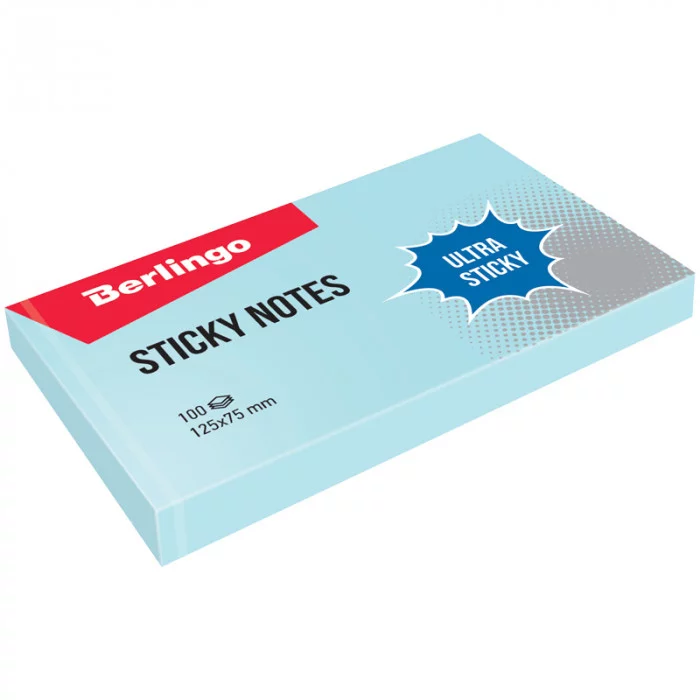 Самоклеящийся блок Berlingo "Ultra Sticky", 125*75мм, 100л, пастель, голубой 270282