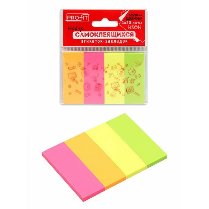 Набор самоклеящихся этикеток-закладок (ЗС-1559) 50х20 мм, 4 цв.блока по 20л.неон ТМ"Profit" ЗС-1559