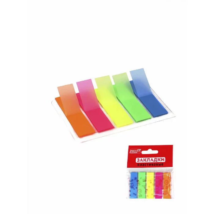 Закладки пластиковые (ЗС-1877) 45х12мм, 5 цветов по 20 листов TM"Profit" ЗС-1877