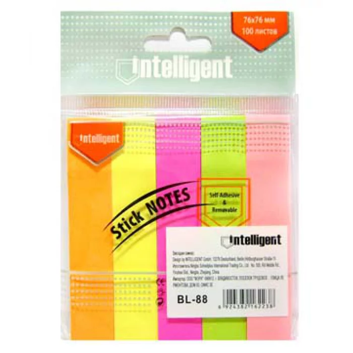 Закладки самокл. INTELLIGENT AG-112/BL-88 НЕОН бумажн. 5цв.15*75мм 303457