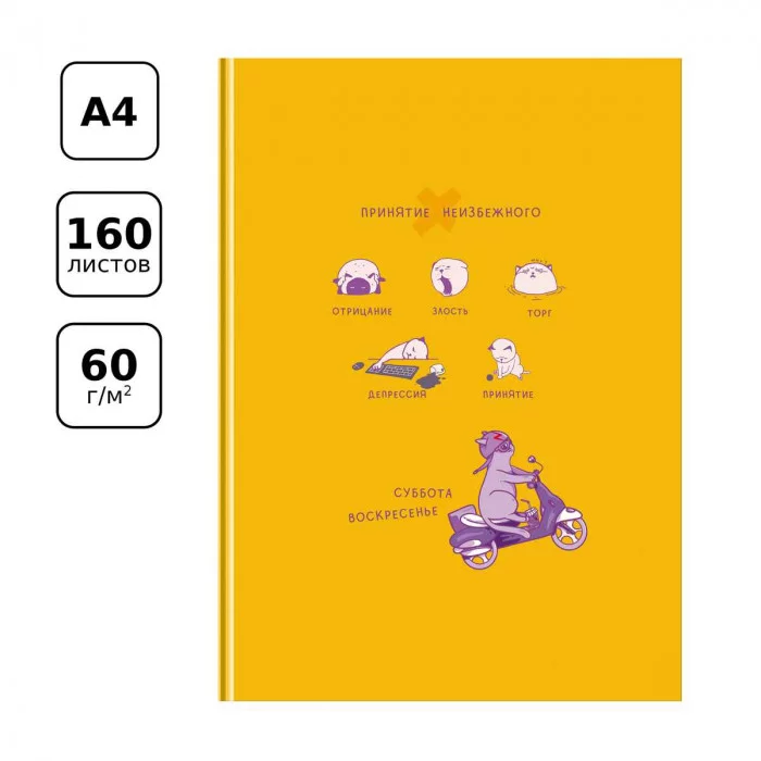 Бизнес-блокнот BG «Дни недели» формата А4 (216*296 мм) состоит из 160 листов и отлично подойдет для работы и учёбы. Внутренний блок – офсетная бумага белого цвета плотностью 60 г/м², линовка – клетка, тип скрепления – сшивка. Обложка блокнота изготовлена из твёрдого картона с глянцевой ламинацией.