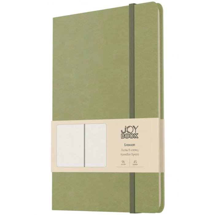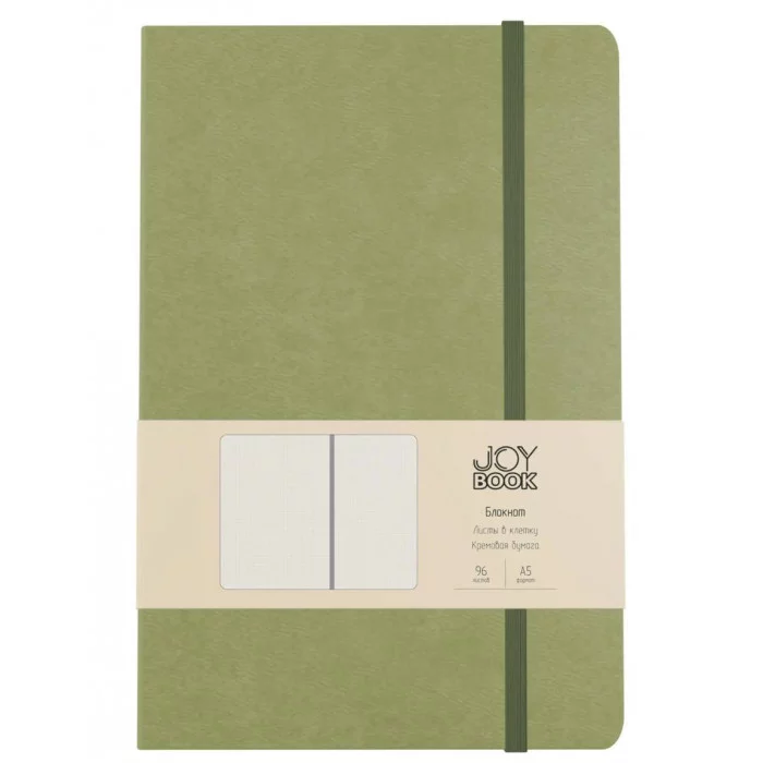 Блокнот А5 формат серии JOY BOOK от компании “Эксмо” не только красив, но и практичен. Твердая обложка из экокожи в трендовом цвете снабжена фиксирующей резинкой, бумага имеет кремовый оттенок, а в конце блока спрятан кармашек для важных мелочей вроде визиток, билетов, записок. Листаж 96 листаж, 7Б, в клетку.
