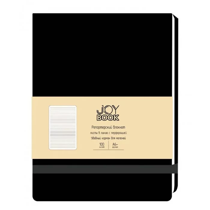 Блокнот серии JOY BOOK не только красив, но и практичен. Твердая обложка из эко кожи в трендовых оттенках снабжена фиксирующей резинкой, бумага имеет кремовый оттенок, а в конце блока спрятан кармашек для важных мелочей вроде визиток, билетов, записок.Внутренний блок 100 листов из высококачественной тонированной бумаги плотностью 70 г/м2,линия.