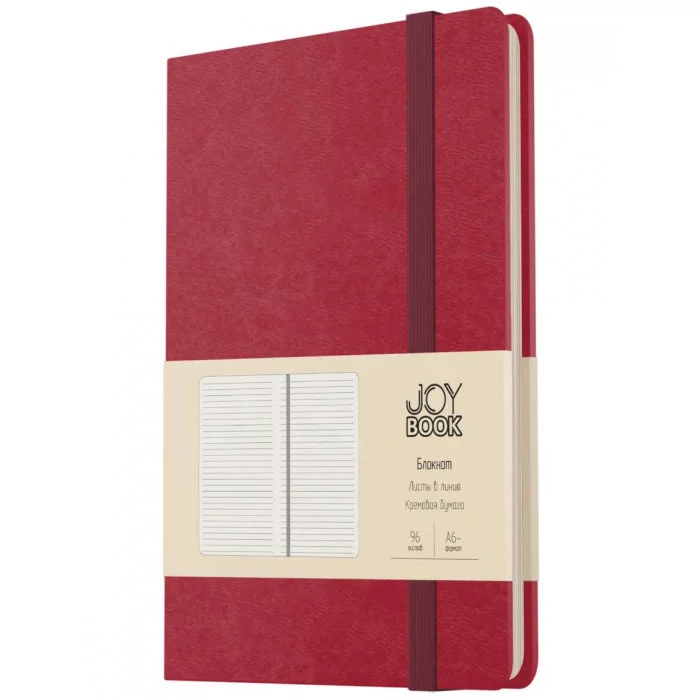 Блокнот А6- формат серии JOY BOOK от компании “Эксмо” не только красив, но и практичен. Твердая обложка из экокожи в трендовом цвете снабжена фиксирующей резинкой, бумага имеет кремовый оттенок, а в конце блока спрятан кармашек для важных мелочей вроде визиток, билетов, записок. Благодаря компактному размеру, его всегда можно взять с собой. Листаж 96 листаж, 7Б, в линию.