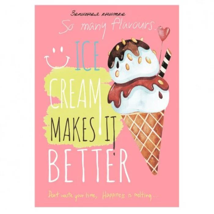 Записная книжка А5, Проф-Пресс, 7БЦ, ламинация, 80 л, Яркое мороженое К80-5782