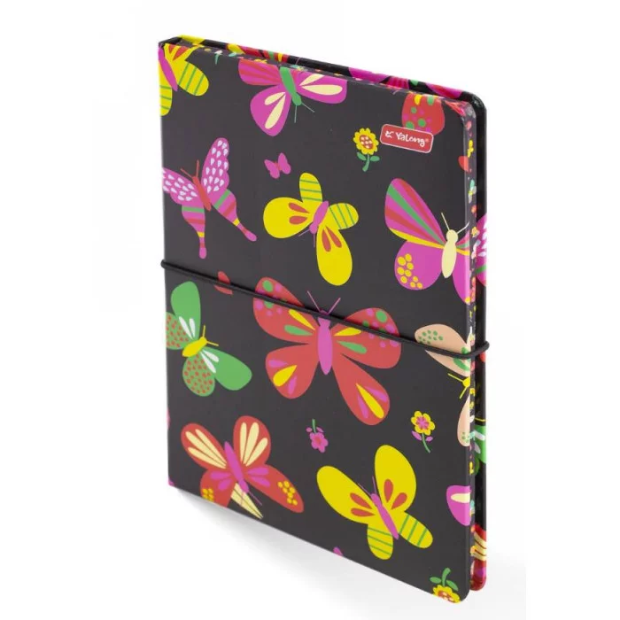 Записная книжка, А6, Yalong, 7БЦ, матовая ламинация, поролон, на резинке, клетка, 80 л. Бабочки черном ассорти YL-PJB-A6100