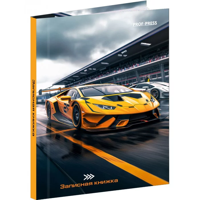 ЗАПИСНАЯ КНИЖКА А7 64л. ЖЁЛТАЯ СПОРТИВНАЯ МАШИНА 64-1680 переплет 7БЦ 64-168