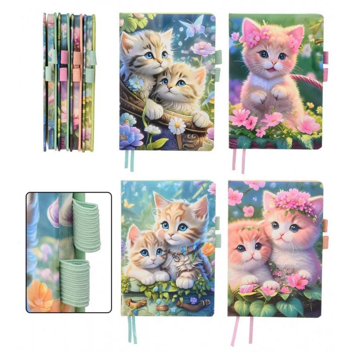 Блокнот детский: "КОТЯТА"; 2 резинки для ручки; цветная обложка с рисунком /ассорти/, внешняя сторон МС-7382