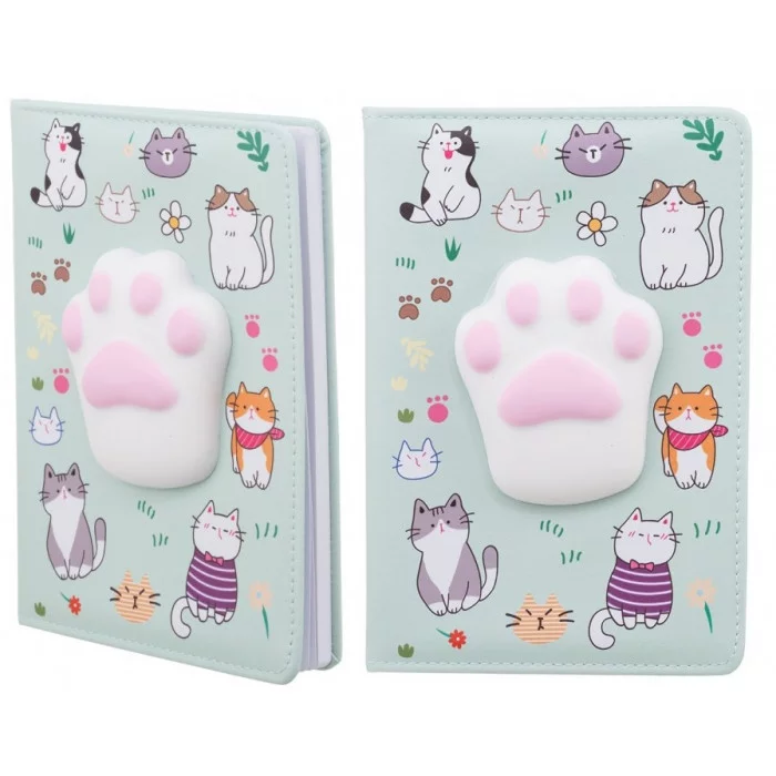 Блокнот детский: "ЛАПКА СКВИШ"; обложка мятного цвета с рисунком; объёмная фигура сквиш в виде лапки МС-7435
