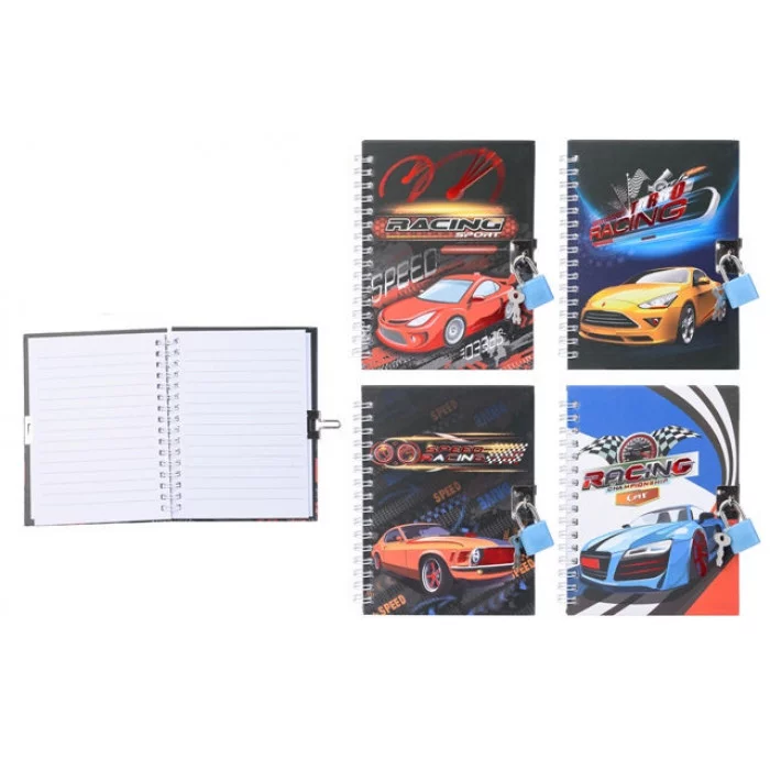 Блокнот детский+замочек МАШИНЫ яркая, цветная обложка 7-БЦ, двойная евроспираль, рисунок-машины МС-5363
