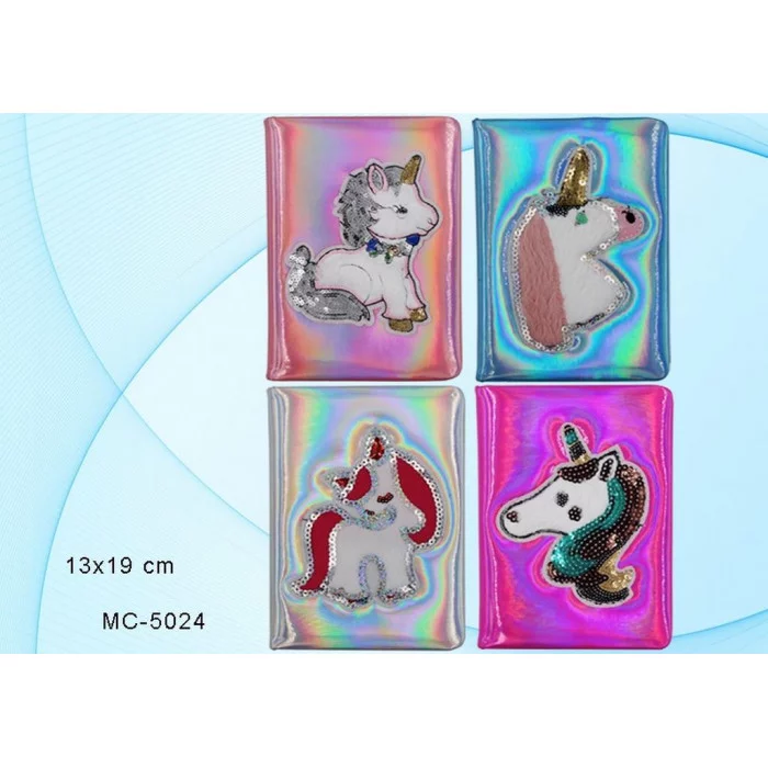 Блокнот МС-5024 ЕДИНОРОГ ,блок-линейка,бумага офсет,меховая аппликация с цвет.пайетками, 64 листа