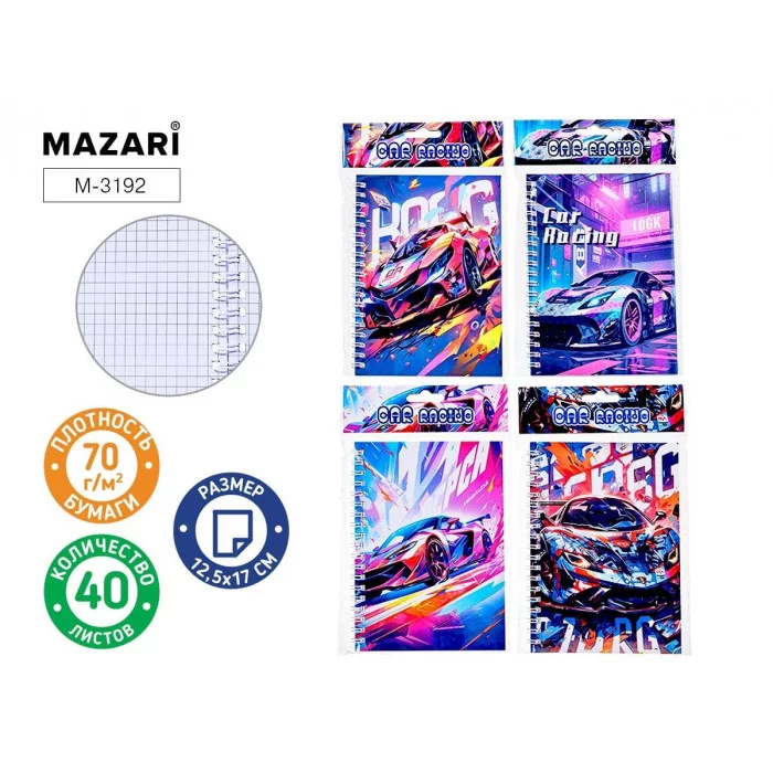 Блокнот "СПОРТКАРЫ", 1 шт, 12.5х17 см, 40 листов M3192