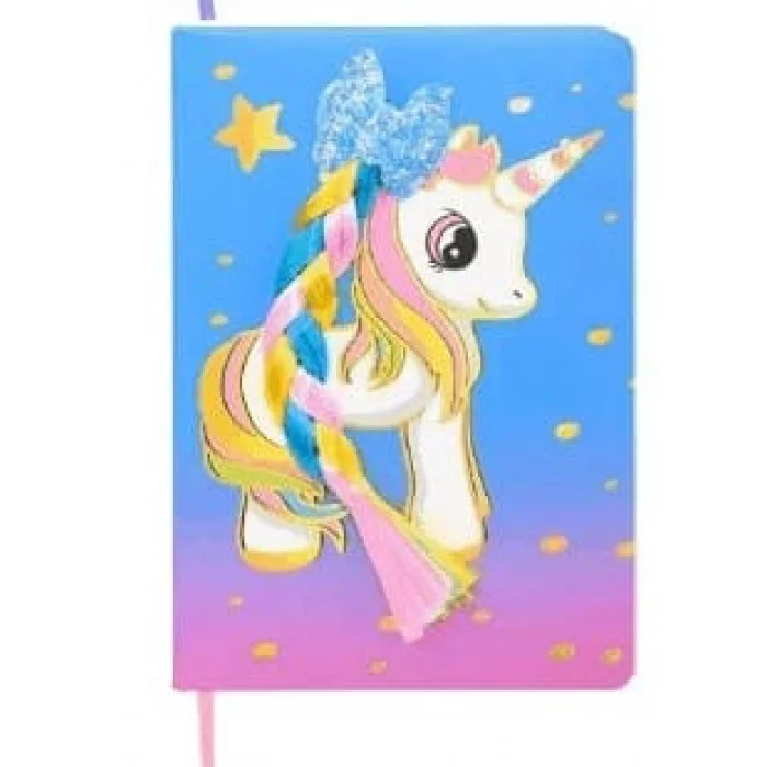Блокнот-тетрадь: "ЕДИНОРОГ"; обложка-твёрдый переплёт с поролоном, матовый ламинат, цветная с рисунком и с косой из искусственного волоса /ассорти/, блок-клетка 1 офсет,тонированный, 80листов, 21*15,5 см