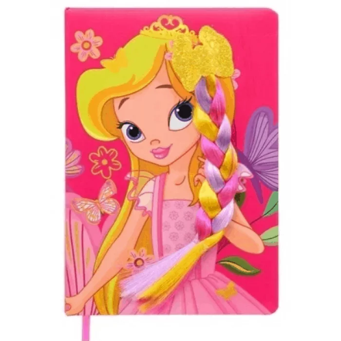 Блокнот-тетрадь: "ПРИНЦЕССА"; обложка-твёрдый переплёт с поролоном, матовый ламинат, цветная с рисунком и с косой из искусственного волоса /ассорти/, блок-клетка 1 офсет,тонированный, 80листов, 21*14,5 см.