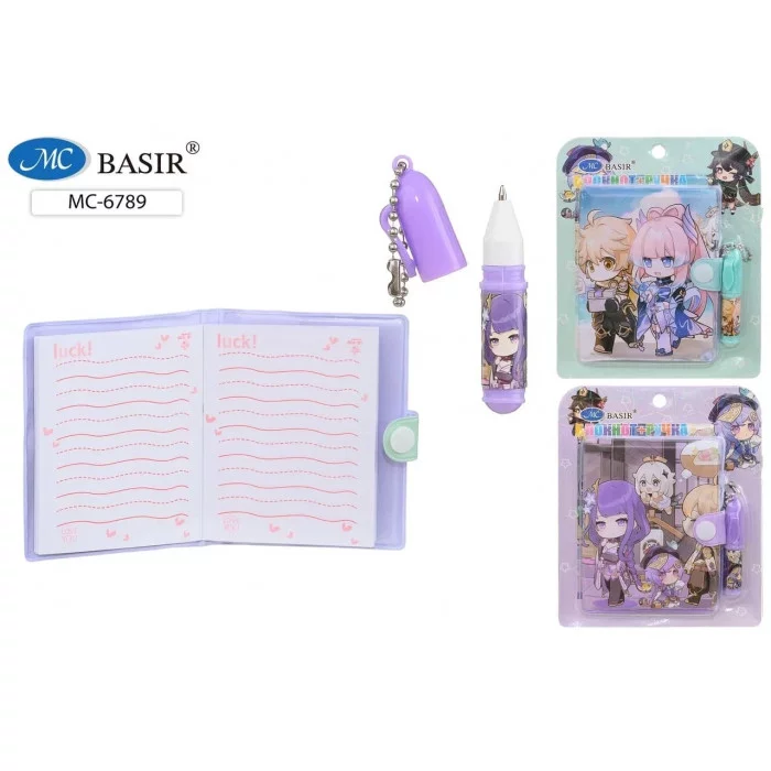 Набор подарочный канцелярский детский АНИМЕ блокнот на кнопке 10, 3*8 см +мини ручка, пластикова МС-6789