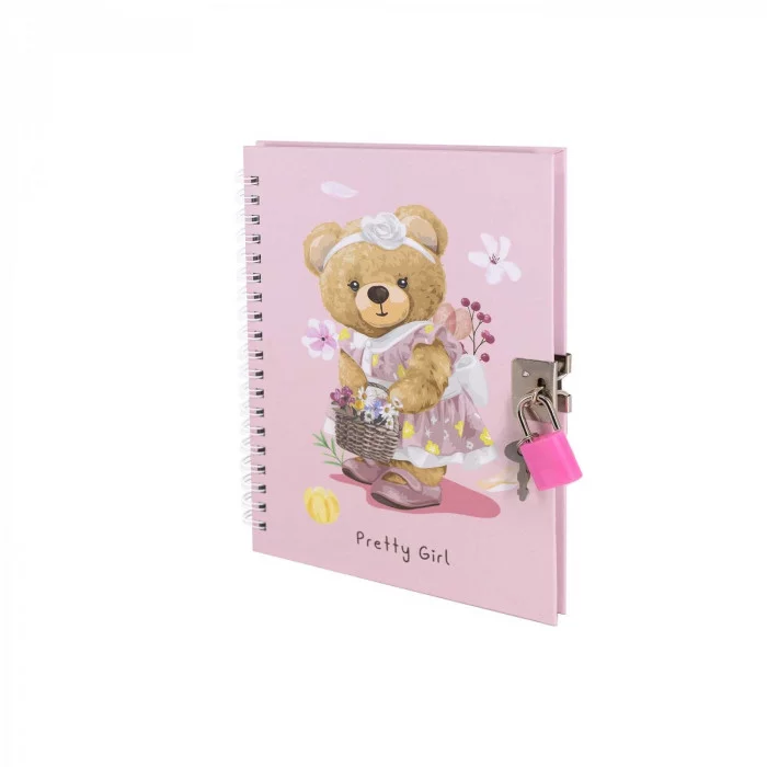 Подарочный блокнот 11,0 см * 15,0 гребень, Alingar, мат. ламинация,замочек, 45 л. клетка, Мишка-модница AL11814