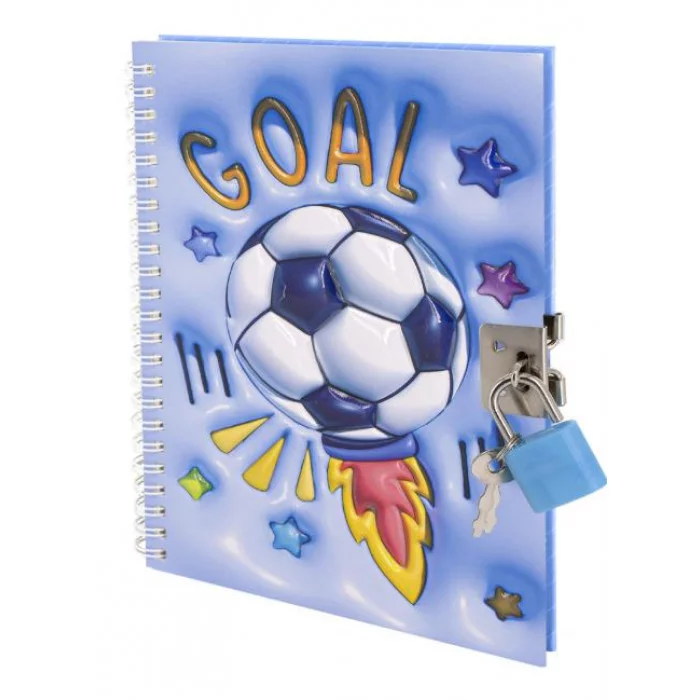 Подарочный блокнот 11,0 см * 15,0 см , гребень, Alingar, ламинация, конгрев, эффект 3D, замочек, 45 л., клетка, "Футбол" AL11728