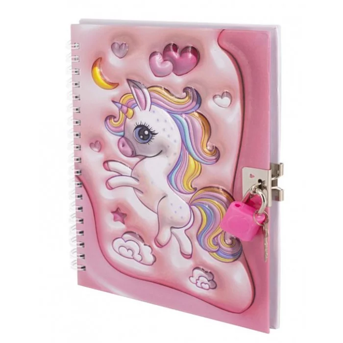 Подарочный блокнот 11,0 см * 15,0 см , гребень, Alingar, ламинация, конгрев, эффект 3D, замочек, 45 л., клетка, "Милый единорог" AL11707