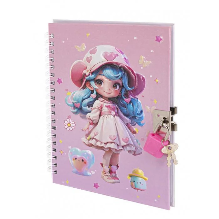 Подарочный блокнот 11,0 см * 15,0 см , гребень, Alingar, ламинация, конгрев, эффект 3D, замочек, 45 л., клетка, "Модница-малышка", бирюзовый AL11719