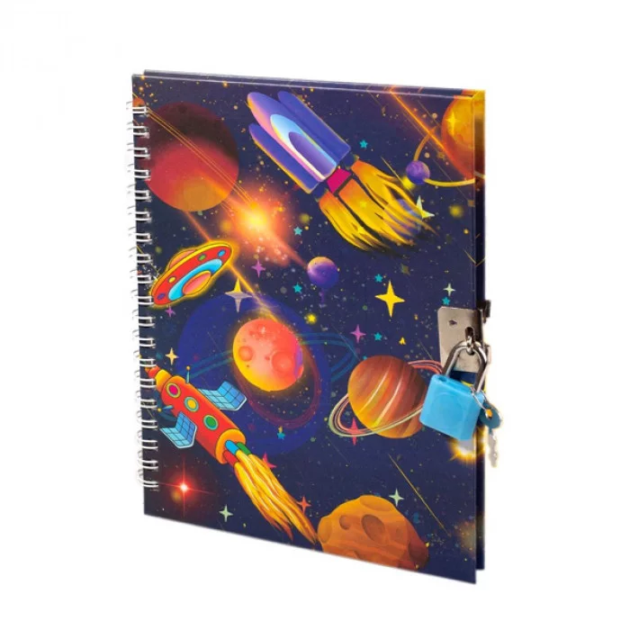 Подарочный блокнот 13, 0 см * 18, 0 гребень, Alingar, ламинация, тиснение, замочек, 50 л. линия, Космолеты AL10102/3