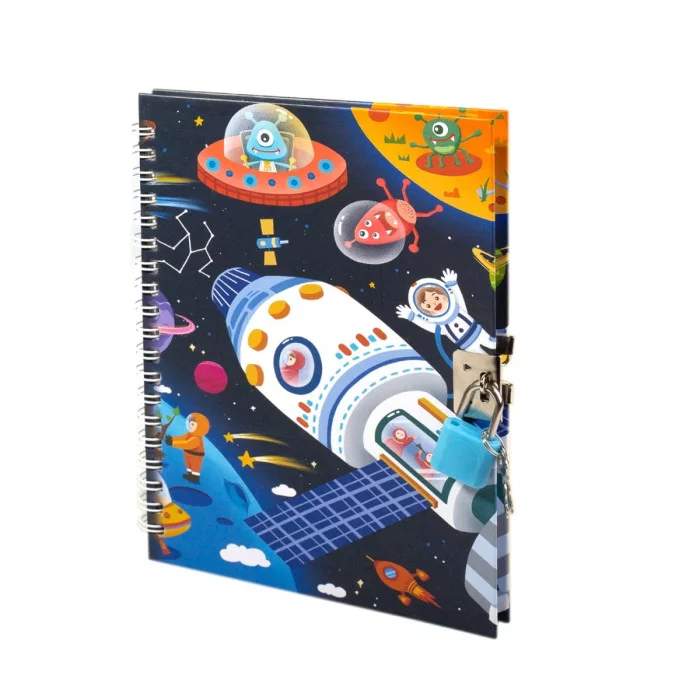 Подарочный блокнот 13,0 см * 18,0 гребень, Alingar, ламинация, тиснение, замочек, 50 л. линия, Пришельцы AL10102/4
