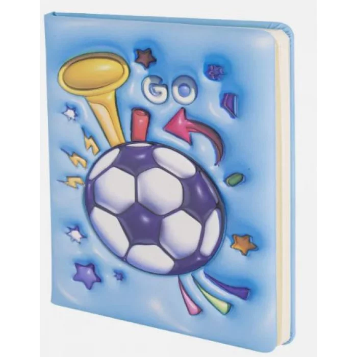 Подарочный блокнот 14,0 см * 21,0 см , 7БЦ, Alingar, PU, поролон, конгрев, эффект 3D, 80л., линия, "Футбол", бирюзовый AL11677