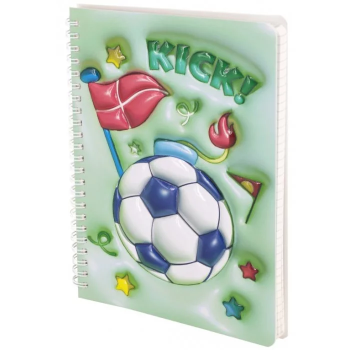 Подарочный блокнот 14, 0 см * 21, 0 см, 7БЦ, Alingar, PU, поролон, конгрев, эффект 3D, 80л., линия, "Футбол", зеленый AL11676