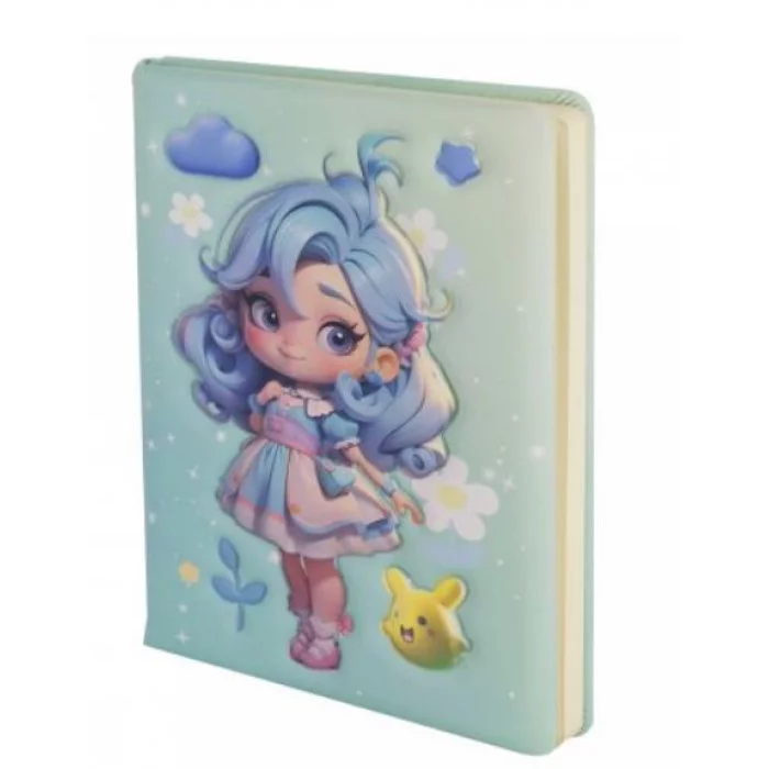 Подарочный блокнот 14,0 см * 21,0 см , 7БЦ, Alingar, PU, поролон, конгрев, эффект 3D, 80л., линия, "Модная малышка", бирюзовый AL11674
