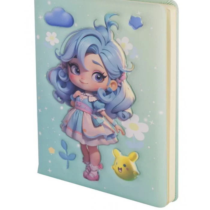 Подарочный блокнот 14,0 см * 21,0 см , 7БЦ, Alingar, PU, поролон, конгрев, эффект 3D, 80л., линия, "Модная малышка", голубой AL11673