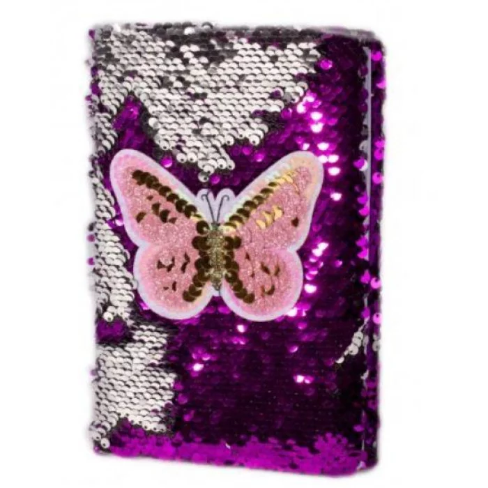 Подарочный блокнот А5, 7БЦ, Alingar, пайетки, аппликация, линия, 60 л., "Бабочка", фиолетовый AL9072
