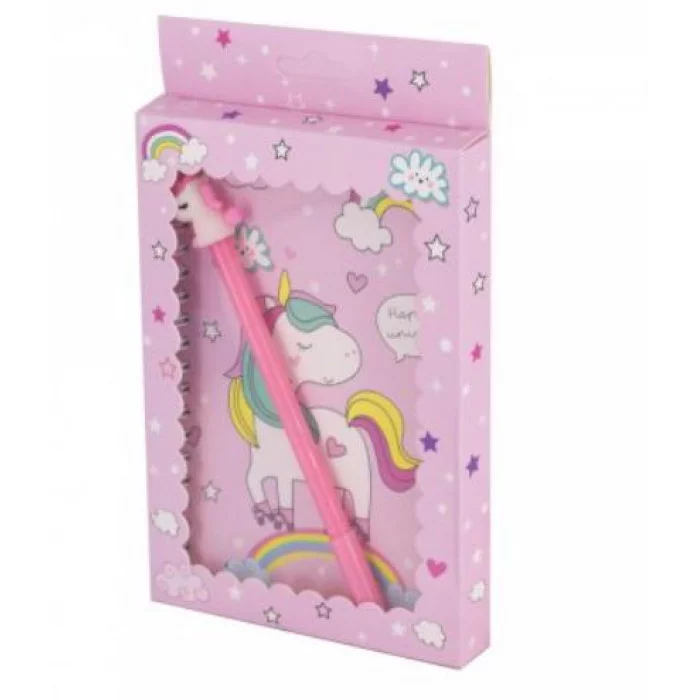 Подарочный блокнот в футляре 13,0 см * 18,0 см, гребень, Alingar, ламинация, ручка, 48 л., клетка, "Единорожка", розовый AL11755