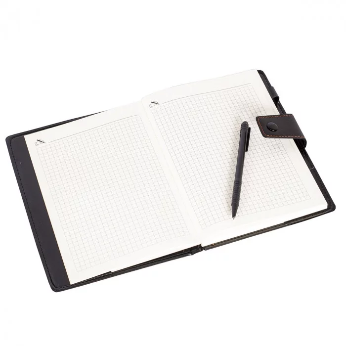 Бизнес- блокнот с авторучкой, 15,0 см * 21,5 см, 7БЦ, Alingar, иск. кожа, клапан на кнопке, 80 л., клетка