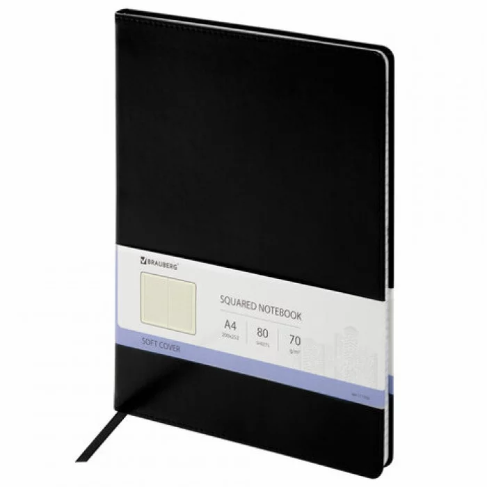 Тетрадь БОЛЬШОЙ ФОРМАТ 200x252 мм В5, BRAUBERG Metropolis Extra под кожу, клетка, 80 л. черный, 111050