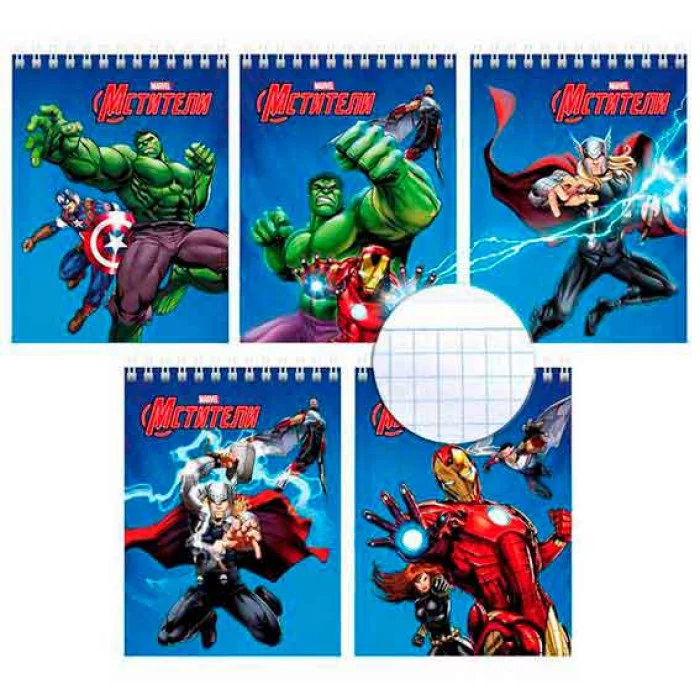 Блокнот 40л А6ф клетка Обл. мелованный картон на гребне -Мстители- MARVEL 40Б6В1гр