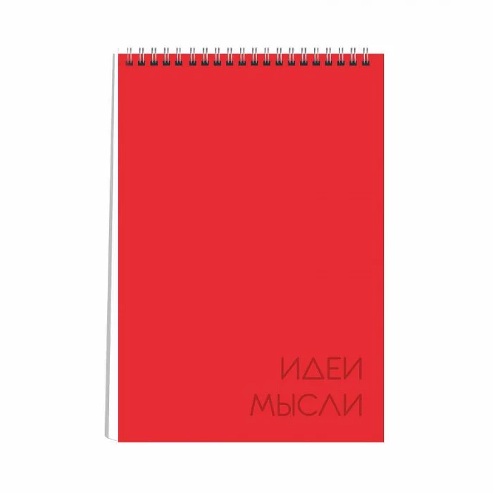 Блокнот А5, 80л. Гребень. Обложка: мелованный картон, глянцевая ламинация. Подложка: переплетный картон. Бумага: белый офсет 60 г/м2. Клетка. "Алый"
