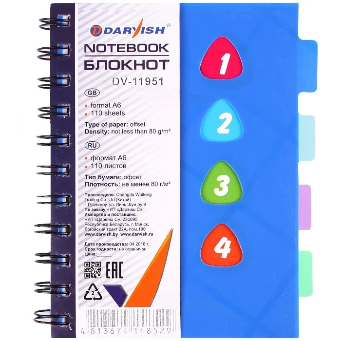 Блокнот А6 110л обложка пластиковая с разделителями DV-11951