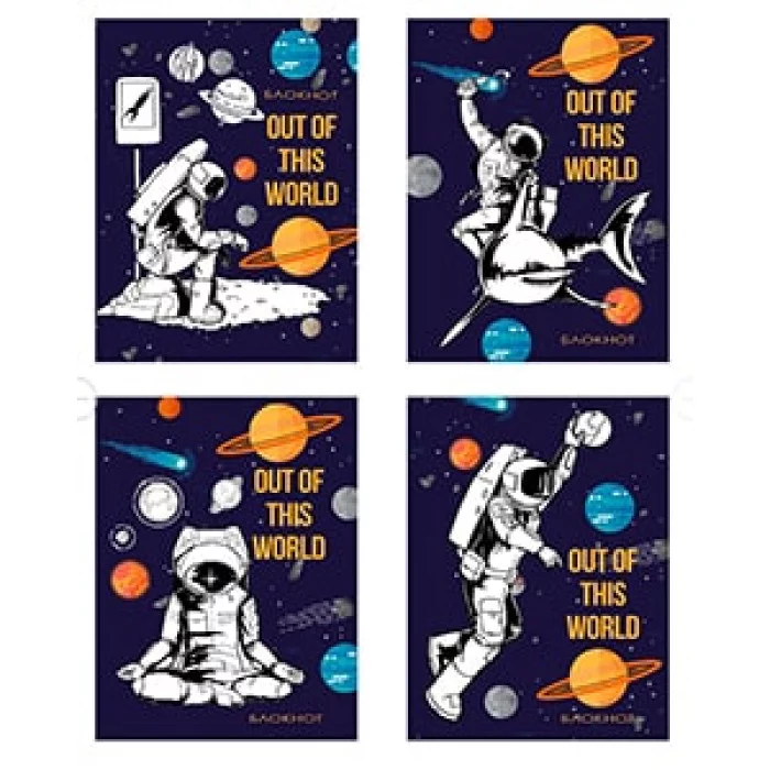БЛОКНОТ А6 40л. на гребне РАЗВЛЕЧЕНИЯ КОСМОНАВТА (Б40-1420) ассорти, цвет.мелов.обл, офсет, клетка Б40-1420