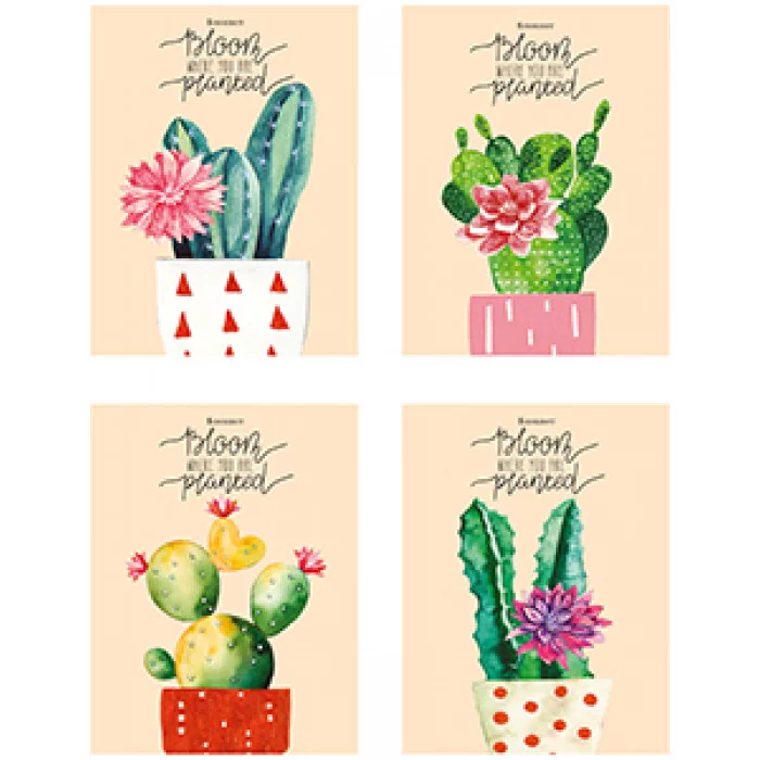 БЛОКНОТ А6 40л. на гребне ЦВЕТУЩИЕ КАКТУСЫ - 1 (Б40-0254) ассорти, цвет.мелов.обл, офсет, клетка Б40-0254