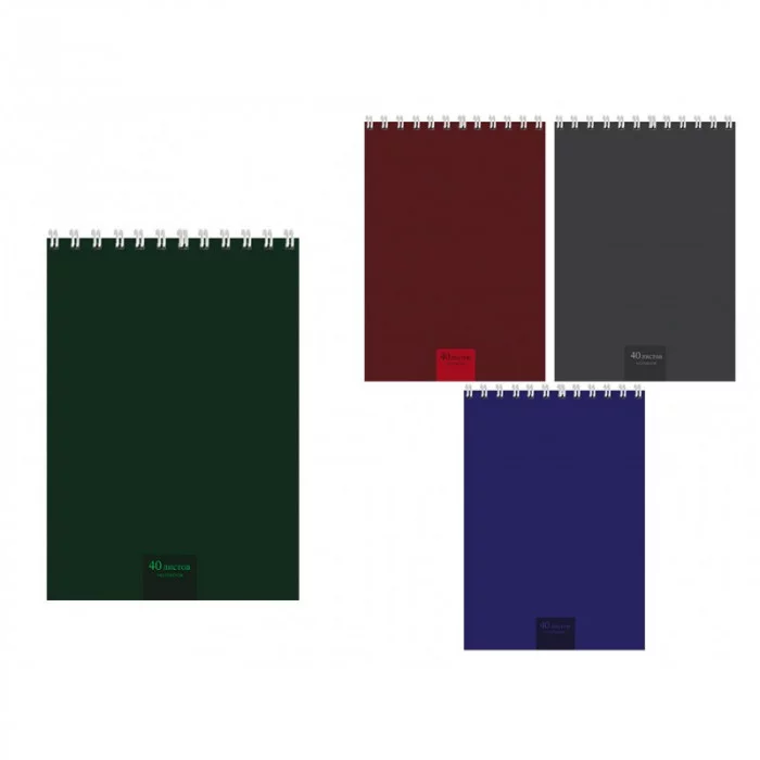 Блокнот выполнен в формате А6, 40 листов, на гребне, обложка картон хром, блок офсет в клетку.