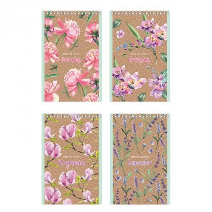 Блокнот А6 гребень 40л. клетка "Floral&Craft" (ассорти)