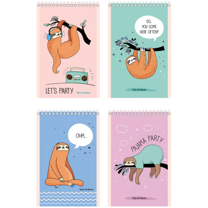 Блокнот А6 гребень 40л. клетка "Lazy party" (ассорти)