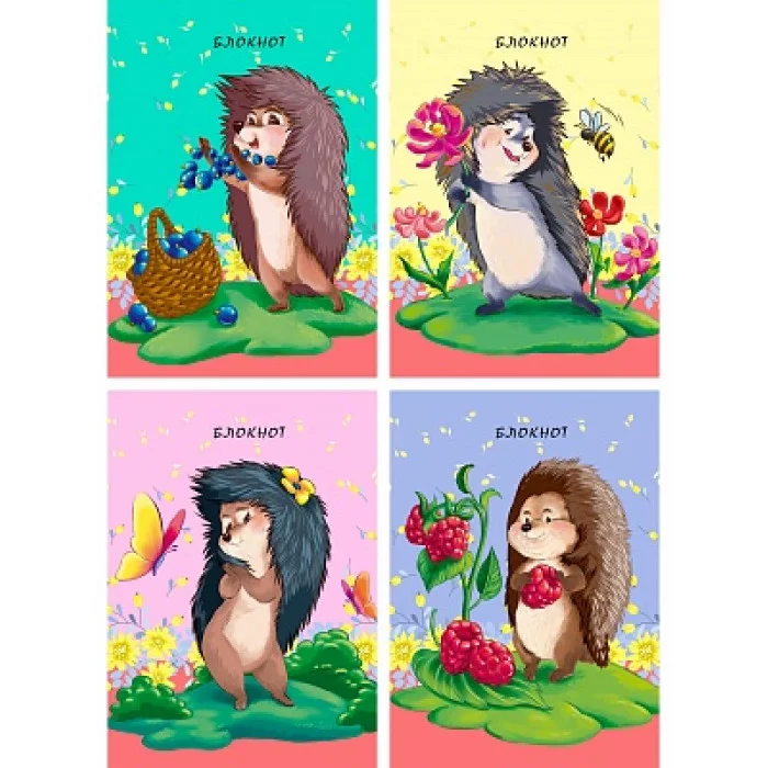 Блокнот А7 40л. на гребне РАДОСТНЫЕ ЕЖИКИ Б40-6039 в клетку TМ Profit