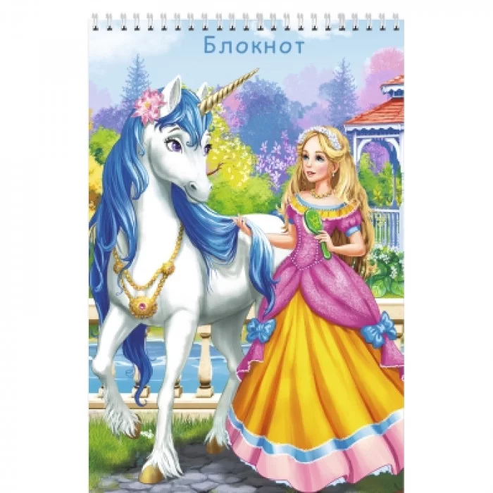 TМ"Profit"Блокнот А7 40л. на гребне СКАЗОЧНЫЕ ПРИНЦЕССЫ (Б40-6052) обл.-мел.картон,бл-офс,в клетку Б40-6052