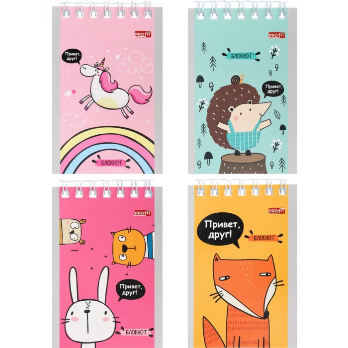 Блокнот А7 40л. на гребне ЖИВОТНЫЕ. МИКС Б40-5725 обл.-мел.кар, бл-офс,в клетку TМ Profit