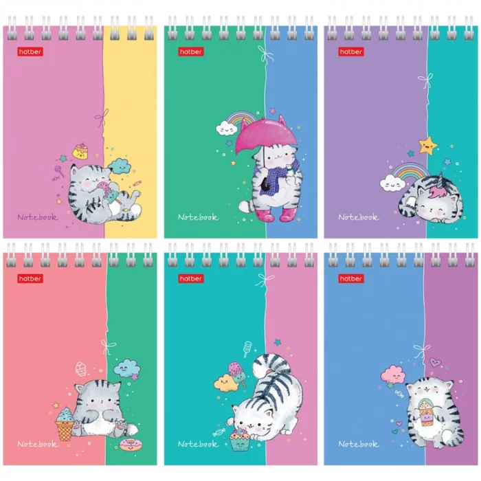 Блокнот А7 60л. на спирали Hatber Приключения кота Пирожка 321012