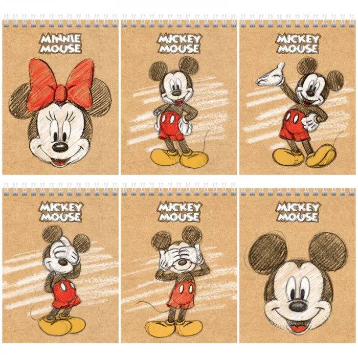 Блокнот МАЛЫЙ ФОРМАТ 110х145 мм А6, 40 л. гребень, обложка картон, клетка, HATBER, Микки Маус 111092