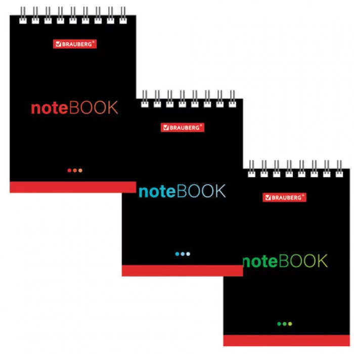 Блокнот МАЛЫЙ ФОРМАТ 75х105 мм 1 шт, А7, 40 л. гребень, картон, клетка, BRAUBERG, Черный стиль 129855