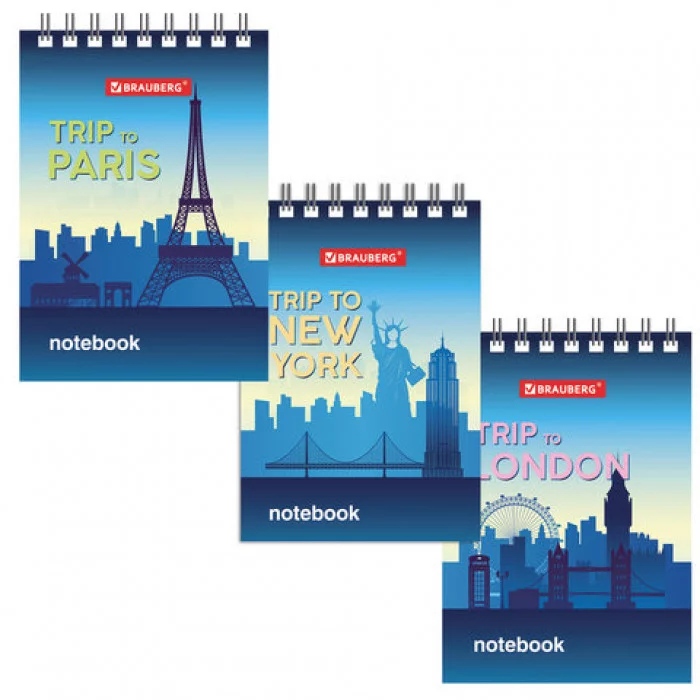 Блокнот МАЛЫЙ ФОРМАТ 75х105 мм А7, 40 л. гребень, картон, клетка, BRAUBERG, Города 129856